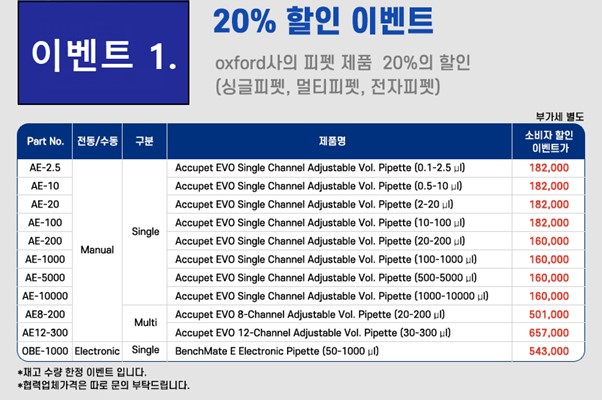 오늘은 실험실에서 항상 사용하는 제품이죠, 옥스포드사의 피펫을 할인가로 제공하는 이벤트를 소개해드리려고 합니다!