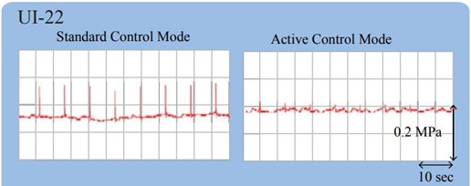 기존 flom 펌프에서 self-regulating 모드를 가동했을 때의 맥동 정도와 비교해 UI-22의 맥동이 잘 제어되어 있음을 알 수 있습니다.