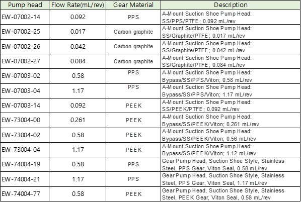 Micropump 기어펌프 헤드의 종류와 사양을 소개시켜 드리겠습니다.