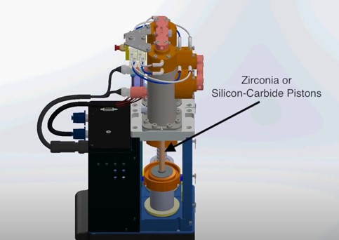 2 마이크로미터 수준의 마감처리가 되어 있는 지르코니아 혹은 실리콘 카바이드 재질의 피스톤입니다.