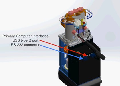 기본 통신 인터페이스는 USB 타입의 B 포트, RS232 커넥터입니다.