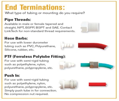 튜빙 연결 방식에 따라, 퀵커플러 양 끝단을 4가지 타입 중에서 선택 가능합니다.