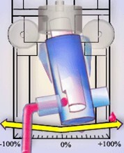 그림에서와 같이 피스톤이 회전함에 따라 피스톤 한쪽 면에 D컷 된 공간이 밸브 역할을 하게 되고