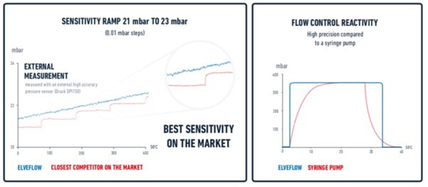 OB1은 Elveflow의 마이크로플루이딕 센서와 조합하여 빠르게 flowrate를 컨트롤 할 수 있습니다.