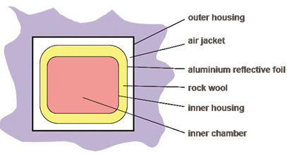 그 뿐만 아니라 Inner housing, rock wool, aluminium reflecive foil, air jacket, outer housing의