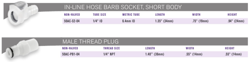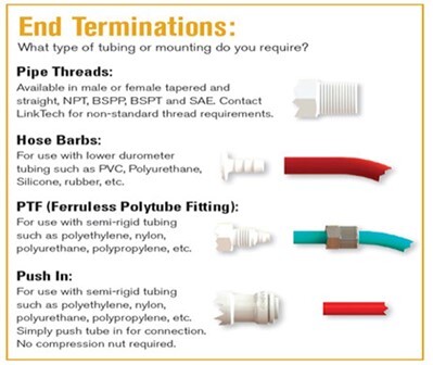 튜빙 연결 방식에 따라, 퀵커플러 양 끝단을 4가지 타입 중에서 선택 가능합니다.