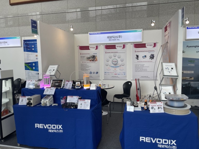 이번 전시회에서 레보딕스는 배터리 제조에 필요한 약 100여종의 다양한 정량펌프와 악세서리를 선보일 예정입니다. 국내외 많은 배터리 제조사 및 연구개발팀이 레보딕스의 다양한 제품라인업을 보면 흥미가 생기겠죠?