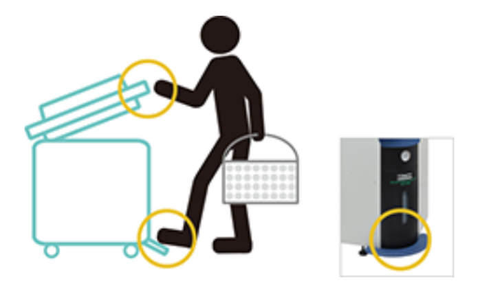 페달로 밟고 손으로 여는 방식으로 안전하게 한 번 더 잠금장치를 걸었습니다.