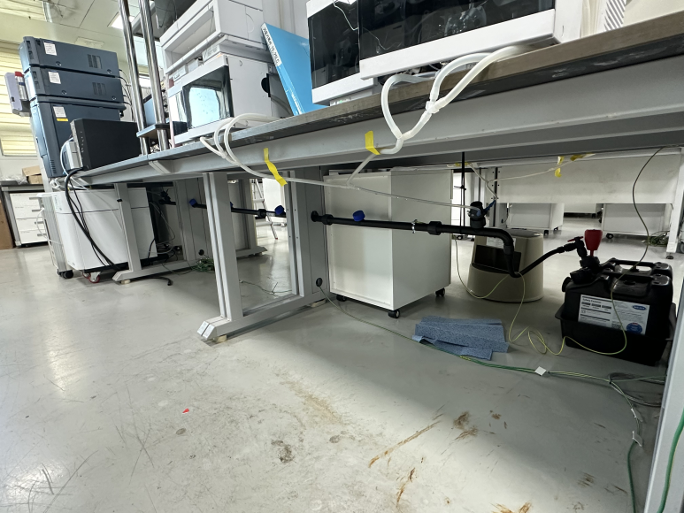 실험실 테이블 아래로 깔끔하게 장착을 진행했습니다.
