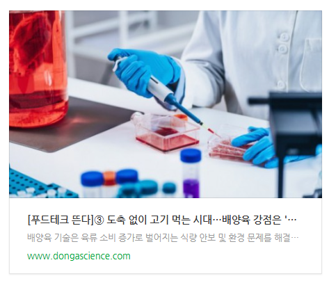 위 뉴스들에서 확인할 수 있듯이 도축 없이 세포 배양으로 만드는 '배양육'은