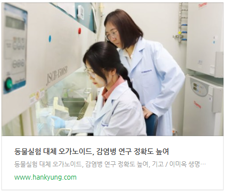 오가노이드는 감염병 및 난치병 연구의 정확도를 높이는 과학으로서 새로운 접근 방법론을 주도하고 있습니다.