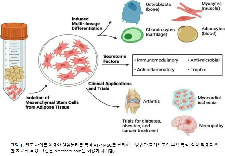 원심분리를 통해 At-hMSC를 분리하는 방법과 줄기세포의 치료적 특성