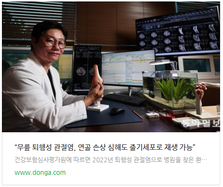 뉴스 보도에 따르면 국내에서도 퇴행성 질환·자가면역질환·척추·관절 질환 등을 대상으로 한