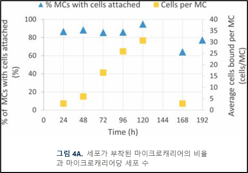 • 1일 차: 87%의 마이크로캐리어에서 줄기세포 부착 확인