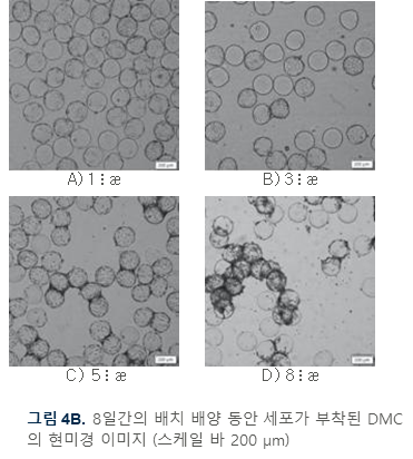 마이크로캐리어 세포증식 결과와 DMC 현미경 이미지