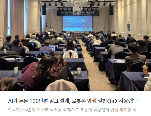 1️⃣ 인공지능이 실험 가설을 만들고 AI로봇이 실험을 수행하는 자율랩(Autonomous Lab)이 등장하면서 신약개발 방식 자체가 달라지고 있습니다.