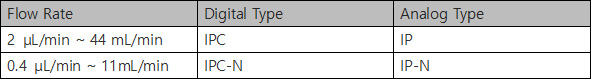 IPC 펌프는 다채널 펌프 중 유량과 조작 타입, 채널 개수가 다양하게 준비되어