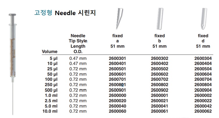 Gas & Liquid Micro Syringe 제품을 소개해 드리겠습니다.
