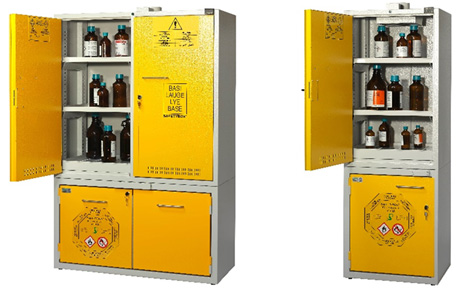 국내 유해화학물질 관련 법규에 따르면, 안전 캐비닛은 화재 발생시 15분을 버틸 수 있어야 하며강화된 화관법 중 13조, 15조에는 유해화학물질의 종류가 다른 경우 혼합하여 보관, 저장을 금지하고 있습니다.