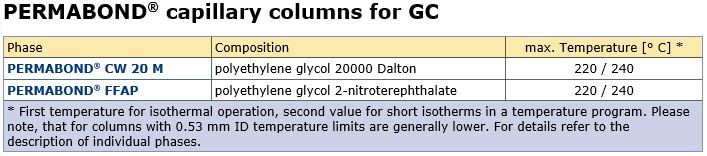- PERMABOND FFAP : FAMEs, free carboxylic acids에 권장