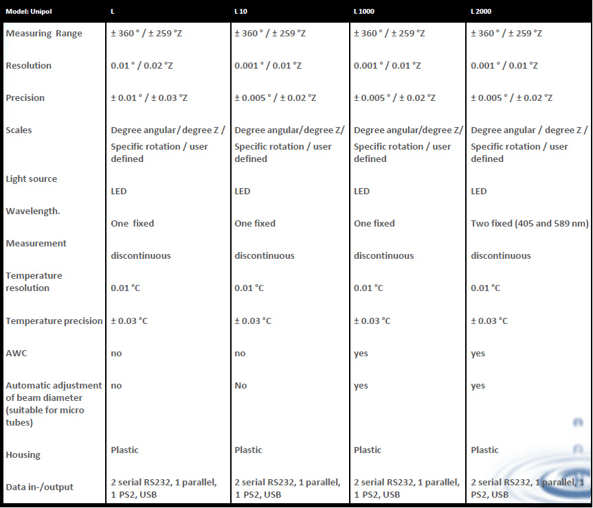 S+H사에서 편광계라인으로 나온 제품군은 아래와 같습니다.