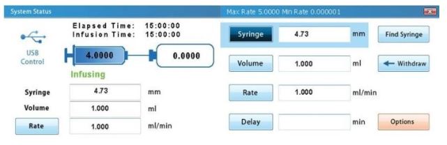 - 유량 설정 가능 (ul/min, ul/hr, ml/min, ml/hr)