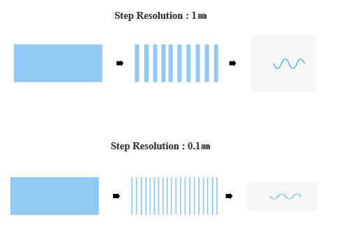 스텝핑 모터의 해상도(resolution)가 작을수록 유량을 미세하게 쪼개어 맥동을 줄일 수 있습니다.