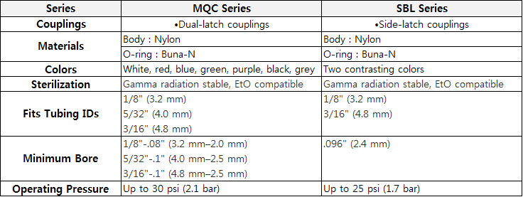 제품을 선정하실 때에 가장 먼저 확인해주셔야 할 것은 Tubing size, Flow Capacity 입니다.
