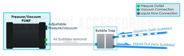 선택적으로 진공 펌프의 트랩의 후면 배출구에 연결하여 버블 트랩 성능을 향상시킬 수 있습니다.