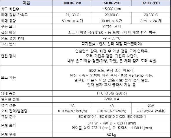 “고속 냉장 마이크로 원심분리기 MDX-SERIES” 입니다.