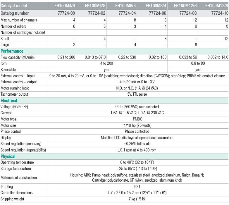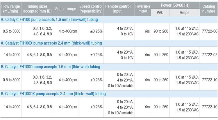 Catalyst의 튜빙펌프는 다양한 유량범위와 압력범위를 제공하여 사용자의 요구에 맞는