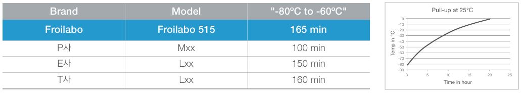 - 높은 저온 유지 능력 (Hold Over Time) : Power fail시 -60℃ 까지 유지시간 최대