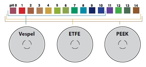 재질로는 Vespel, ETFE, PEEK 재질 중에서 선택 가능합니다.