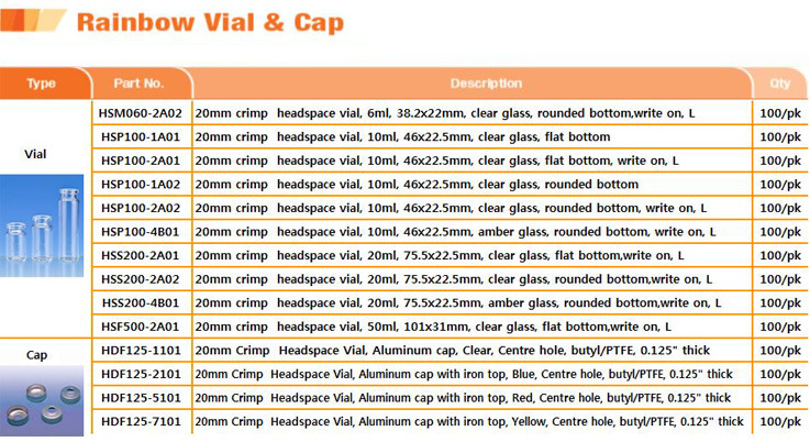 - Headspace Vial : Diameter가 넓어서 용량이 큼