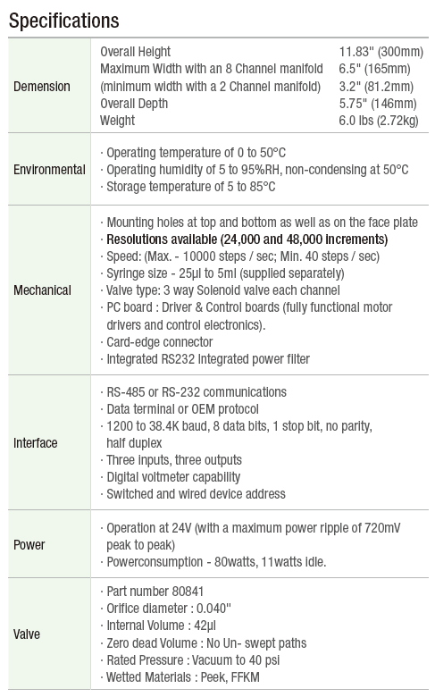 특히 장비 장착형으로 적합한 Syringe Pump입니다.