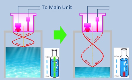 총 4단계의 LED 등이 수위를 표시하며 가장 낮은 단계의 레벨 도달 시 알람이 울리며 펌프가 작동을 멈추게 됩니다.