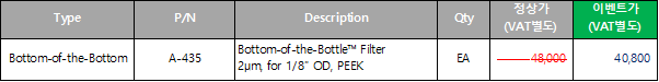 첫번째 소개해 드릴 제품은 미국 IDEX사의 All-PEEK재질의 Solvent Filter입니다.