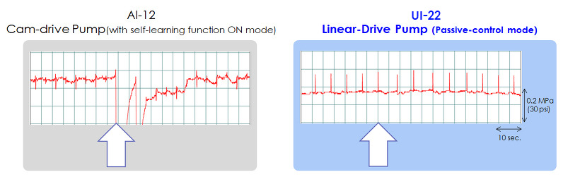 UI-22 모델의 Active-Control Mode 적용 시 맥동이 거의 없으므로 정밀한 실험을 하실 때 안성맞춤인 제품입니다.