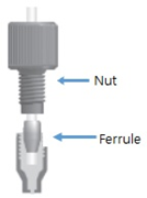 Fitting은 튜빙을 연결할 때 필요하며, 아래 그림처럼 Nut와 Ferrule로 구성되어 있습니다.