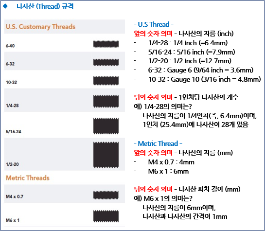 ■ Receiving Port의 나사산 규격 (6-40, 10-32, ¼-28, 5/16-24, M4, M6…)