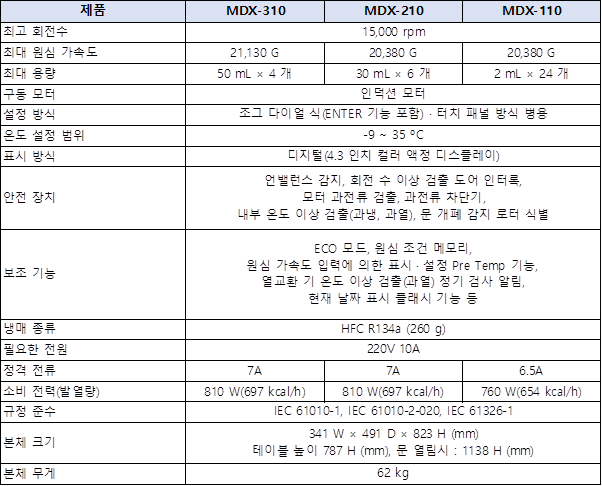 “고속 냉장 마이크로 원심분리기 MDX-SERIES” 입니다.