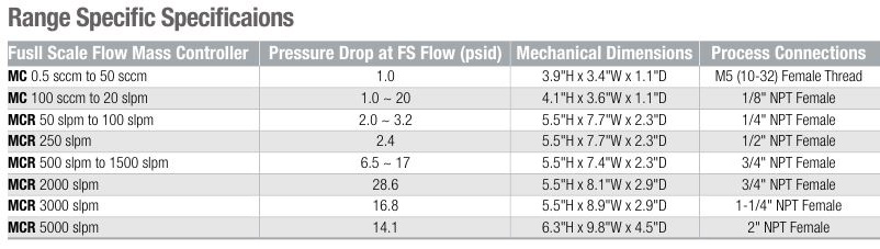 따라서 MC-50SCCM-D는 최소 0.25ml/min에서 최대 50ml/min까지 컨트롤이 가능한 제품이라고 생각해주시면 됩니다.