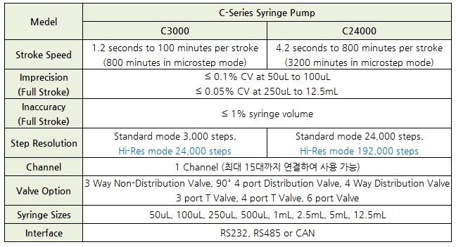 · Syringe Size : 50uL~12.5mL (타사 대비 가장 큰 볼륨의 Syringe 장착 가능)