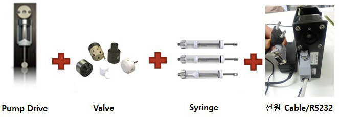 TriContinent 사의 장비장착형 C-Series Syringe Pump는 Drive에 Valve와 Syringe가 장착되어야 합니다.