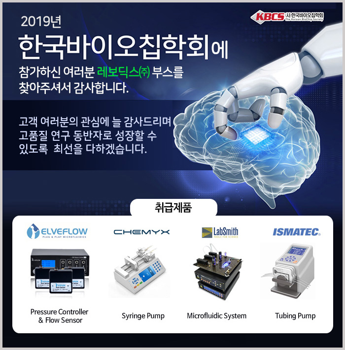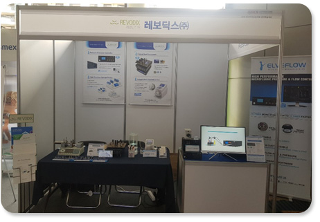 레보딕스는 Microfluidics 장비와 액체 이송용 펌프를 이 날 선보였습니다.