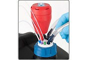 병의 입구에 용매병디스펜서를 장착하여 시약을 흡입하고 내리면서