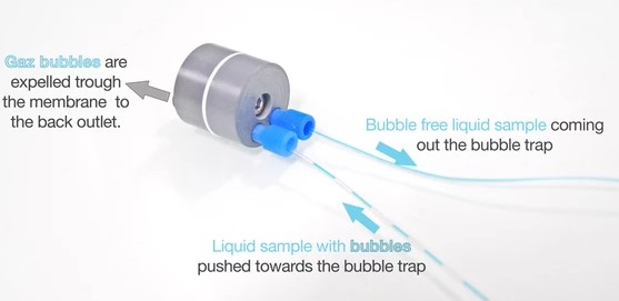 이 버블 트랩을 사용하면 최대 60ml/min의 유량으로 100% 거품 제거가 가능합니다.