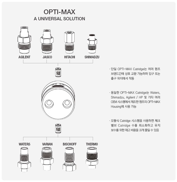 Optimize 제품은 주요 HPLC 시스템에 모두 호환 가능한 제품입니다.