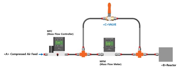-Air의 흐름 : [MFC] -> [MFM] and <C>VALVE-> <B> REACTOR