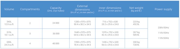 아래는 Froilabo사 초저온냉동고의 사양입니다.